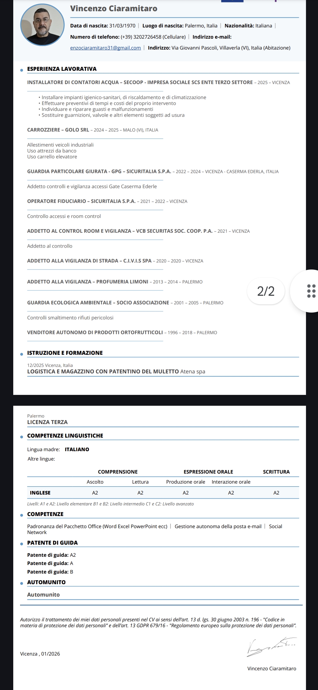 Qui devi registrarti per creare la tua scheda e proporti come Professionista Lavoratore di ogni settore e livello, per farti selezionare dai Datori di Lavoro che cercano una figura come la tua. La selezione dei candidati non prevede più l'utilizzo di annunci di lavoro (nelle classiche categorie dei candidati in cerca di occupazione e delle aziende che cercano elementi da selezionare); questo è oramai superato. Il sistema sostituisce completamente con nuovi metodi operativi i vecchi sistemi di domanda e offerta tramite inserzioni. Archivio Curricula è innovativo ed estremamente funzionale ed efficace consentendo una ricerca mirata e diretta, senza necessità di importanti investimenti da parte delle aziende in cerca di lavoratori, e senza costi per i lavoratori in inserzioni, o invii di curricula. Questo nuovo sistema consente al Lavoratori con la creazione della propria scheda lavorativa digitale di presentarsi in automatico e partecipare alle migliori selezioni di personale da parte di tutte le Imprese, che grazie a potenti ed evoluti strumenti potranno individuare i propri lavoratori in modo preciso economico e veloce; il colloquio di lavoro inteso come "tentativo" non è più necessario, divenendo una formalizzazione finale per l'inserimento del lavoratore selezionato. Saranno i Datori di Lavoro, utilizzando questo nuovo rivoluzionario sistema di collocamento, ad individuare esattamente i candidati risparmiando enormemente in tempo e denaro e riducendo il rischio di errore nella selezione. Il sistema è un avanzato insieme di algoritmi e funzionalità di gestione delle informazioni dei CV. Il Lavoratore deve solo registrarsi e compilare attentamente ed in modo completo e scrupoloso la sua scheda personale; il resto lo faranno i Datori di Lavoro